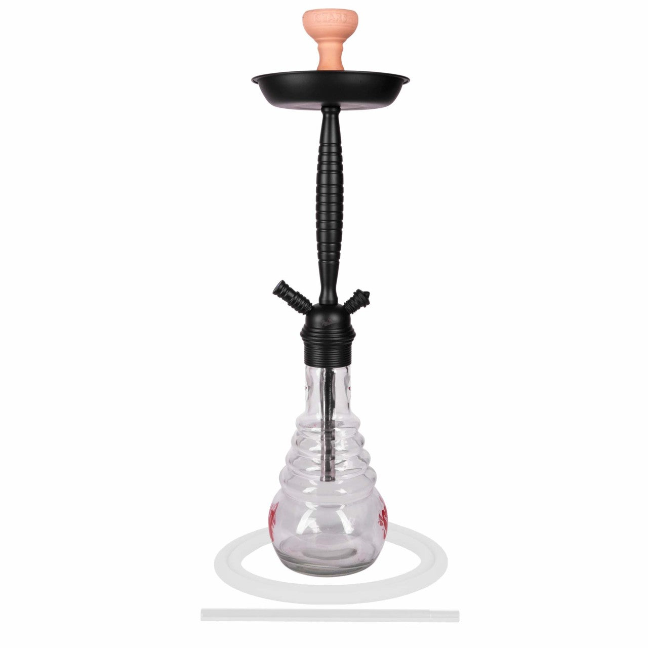 • Silicone hose with aluminum mouthpiece • Charcoal tray, charcoal tongs